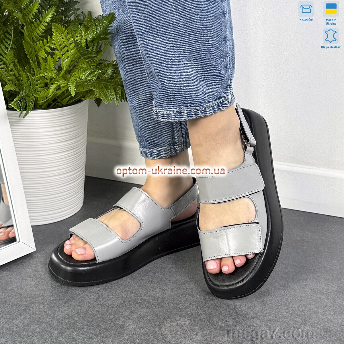 Цвет: серый; Материал изделия: натуральная кожа; Размерная сетка: 36-40; Материал подкладки: искусственная кожа; Материал подошвы: пвх; Страна: Украина; Высота платформы: 4; Размер (на фото): 38; Сезон: лето; Пол: женщины; Материал стельки: искусственная кожа; Коробка: да;