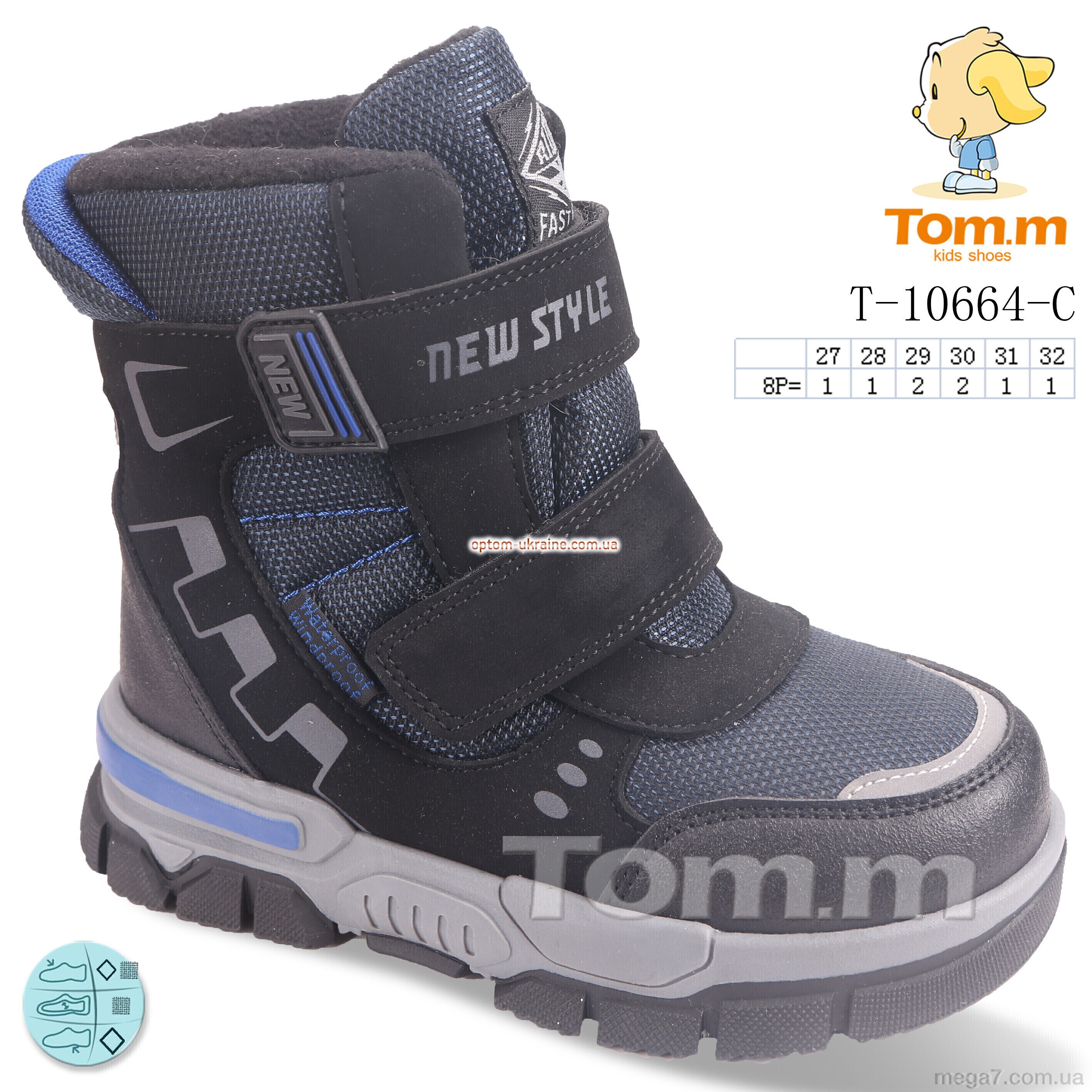 Цвет: синий; Материал изделия: искусственная кожа-текстиль; Размерная сетка: 27-32; Материал подкладки: искусственный мех; Материал подошвы: резина; Страна: Китай; Размер (на фото): 27; Сезон: зима; Пол: дети; Тип: мальчик; Материал стельки: искусственный мех;