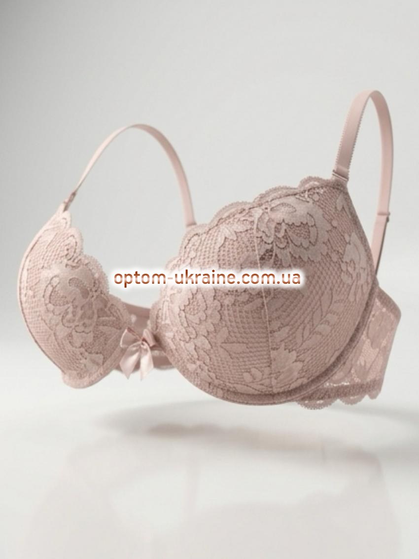 Бюстгальтер: кружевной бюст со съёмной поролоновой подушкой. Вид чашек: контурные чашечки. Контурные чашечки сохраняют свою форму даже тогда, когда бюстгальтер не надет. Как правило, такие чашечки идут с косточками и усилены тонким слоем поролона или специального наполнителя, что и придаёт им форму. Наполнитель чашки: тонкий поролон и съёмные поролоновые подушки. Размер чашки: В и С. Состав ткани: 83% nylon, 17% spandex. Объёмы в упаковке: чашка В: 70-1шт, 75-2шт, 80-2 шт. 85-2 шт. чашка С: 75-2 шт. 80-2 шт. 85-2 шт. Швы на чашках: вертикальные швы по центру чашечек. Вертикальные швы по середине чашечек обеспечивают груди большую поддержку и приподнимают её. Косточки: да. Перемычка: узкая. Боковые части лифа: узкая.. Застежка: сзади на один крючок Бретельки: тонкие, съемные. Виды бюстгальтеров