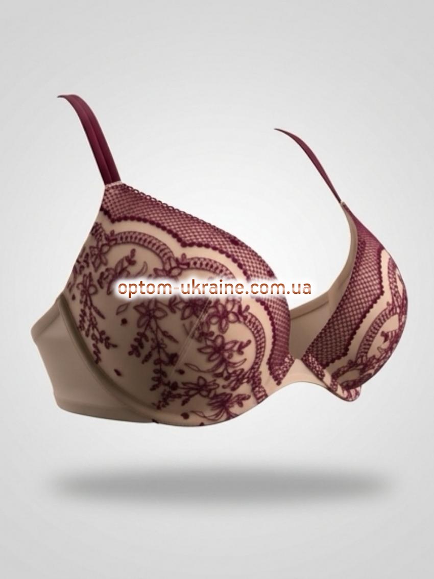 Бюстгальтер: кружевной бюст. Вид чашек: чашечки push up – идеальный вариант для женщин, которые хотят получить красивую ложбинку и визуально более объёмную грудь. Наполнитель чашки: поролоновый push up. Размер чашки: В и С. Состав ткани: 70% Polyester, 30% Nylon. Объёмы в упаковке: чашка В: 70-1шт, 75-2шт, 80-2шт, 85-1шт., чашка C: 75-2шт, 80-2шт, 85-2шт. Швы на чашках: вертикальные швы по центру чашечек. Вертикальные швы по середине чашечек обеспечивают груди большую поддержку и приподнимают её. Косточки: да. Перемычка: узкая. Боковые части лифа: узкая. Застежка: сзади на два крючка. Бретельки: тонкие, несъемные. Виды бюстгальтеров