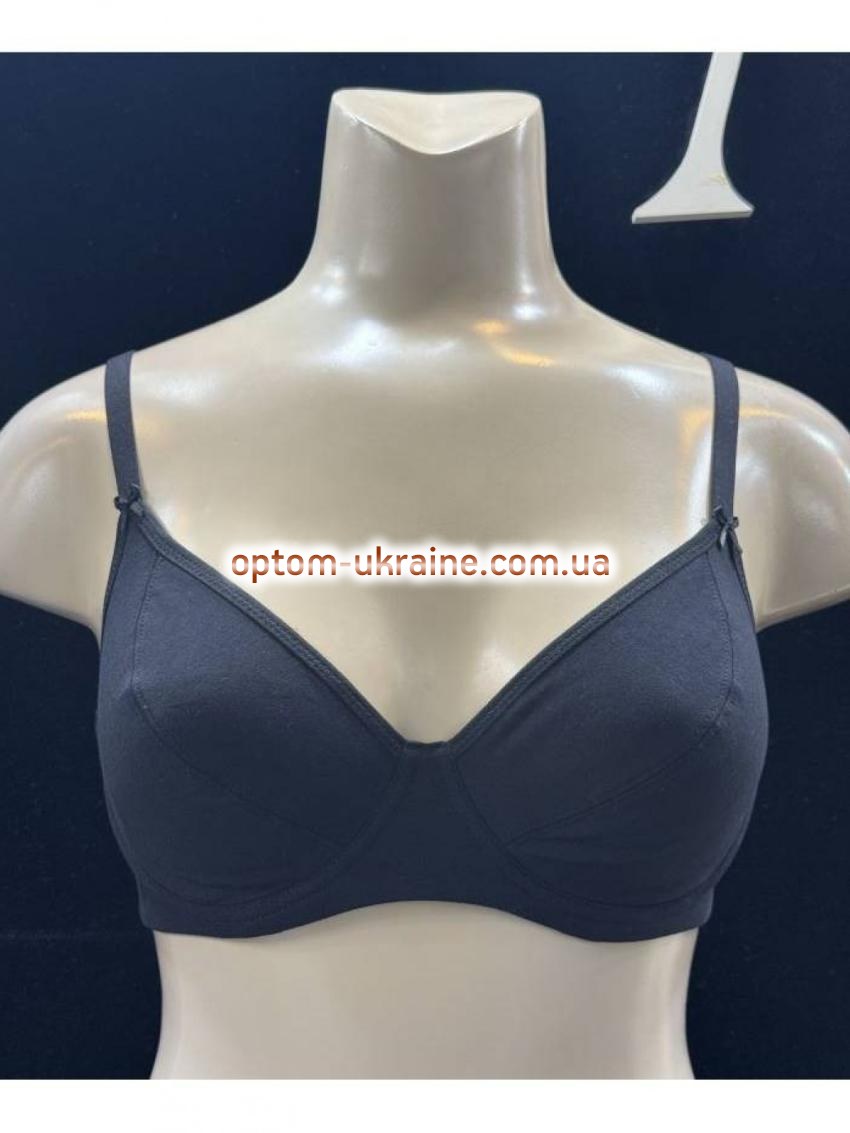 Бюстгальтер: гладкий трикотажный бюст. Вид чашек: полноразмерные. Наполнитель чашки: без поролона Размер чашки: С и D. Состав ткани: 93% cotton, 7% spandex. Объёмы в упаковке: С чашка 75-1 шт. 80-2 шт. 85-2 шт. 90-1 шт. D чашка 80-1 шт. 85-2 шт. 90-2 шт. 95-1 шт. Косточки: нет. Перемычка: широкая. Боковые части лифа: средняя Застежка: сзади на 2 крючка. Бретельки: несъемные.