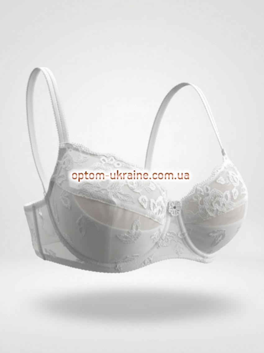 Бюстгальтер: классический, ажурный. Вид чашек: полноразмерные чашечки с подкладкой. Наполнитель чашки: тонкий поролон. Размер чашки: В. Состав ткани: 82% нейлон, 18% эластан. Размеры в упаковке: 75-1шт, 80-2шт, 85-2шт, 90-1шт. Швы на чашках: диагональные швы. Косточки: да. Перемычка: широкая. Боковые части лифа: средняя. Застежка: сзади на два крючка. Бретельки: тонкие, несъемные. Виды бюстгальтеров