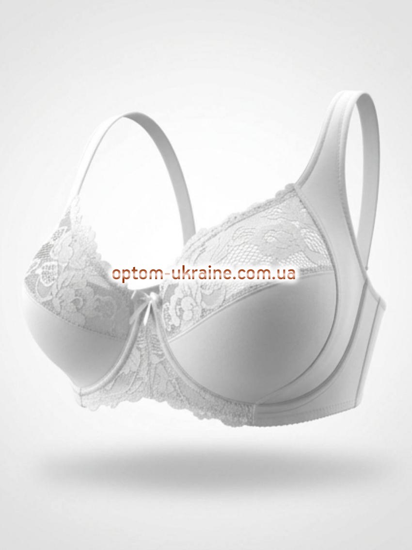 Бюстгальтер: гладкий, классический с кружевными вставками. Вид чашек: мягкие полноразмерные. Наполнитель чашки: тонкий поролон. Размер чашки: Е. Состав ткани: 82% нейлон, 18% эластан. Объёмы в упаковке: 80-1 шт. 85-1 шт. 90-2 шт. 95-1 шт. 100-1 шт. Швы на чашках: диагональные. Косточки: да. Перемычка: широкая. Боковые части лифа: средние. Застежка: сзади на два крючка. Бретельки: средние, несъемные. Виды бюстгальтеров