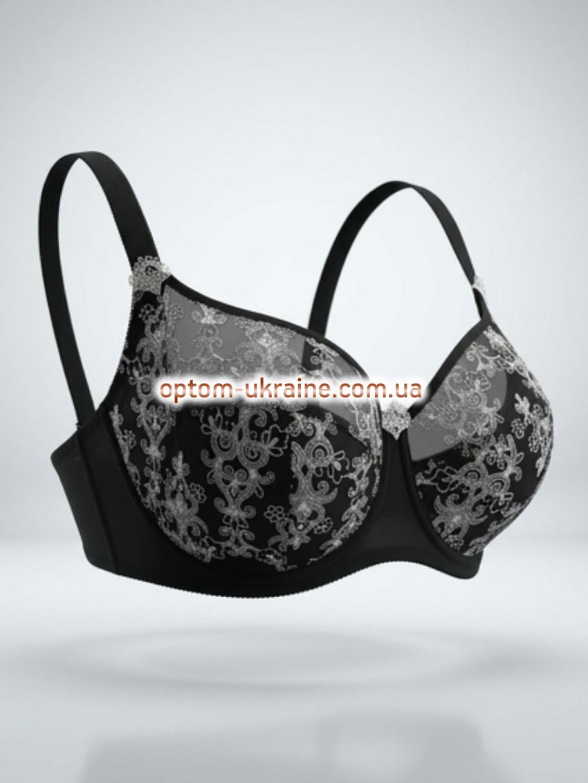 Бюстгальтер: классический бюст с ажурными вставками. Вид чашек: мягкие, полноразмерные чашечки закрывают грудь практически полностью, обеспечивая более широкий охват и поддержку. Наполнитель чашки: тонкий поролон. Размер чашки: Е. Состав ткани: 82% нейлон, 18% эластан. Размеры в упаковке: 80-1шт, 85-1шт, 90-2шт, 95-1шт, 100-1шт. Швы на чашках: вертикальные и диагональные швы обеспечивают лучшую поддержку и форму бюсту. Такие швы не только усиливают поддержку груди, но и приподнимают её ближе к середине грудины. Благодаря диагональному дизайну форма груди становится более утончённой. Косточки: да. Перемычка: широкая. Боковые части лифа: средние. Застежка: сзади на три крючка. Бретельки: средние, несъемные. Виды бюстгальтеров
