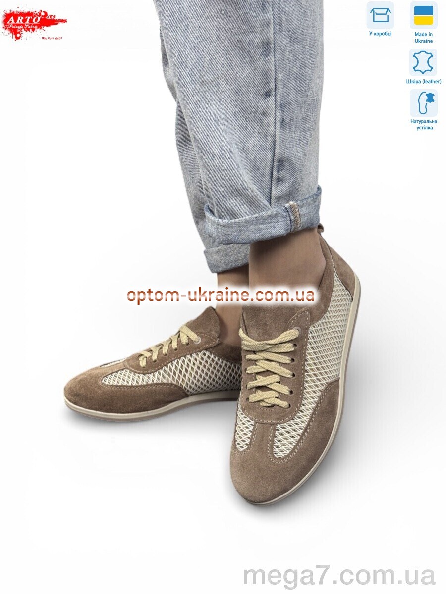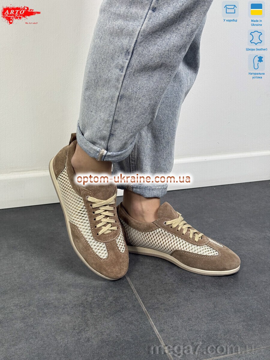 Цвет: коричневый; Материал изделия: натуральная замша-текстиль; Размерная сетка: 36-40; Материал подкладки: текстиль; Материал подошвы: пвх; Страна: Украина; Размер (на фото): 37; Сезон: лето; Пол: женщины; Материал стельки: натуральная кожа; Коробка: да; Фото поставщика: да;